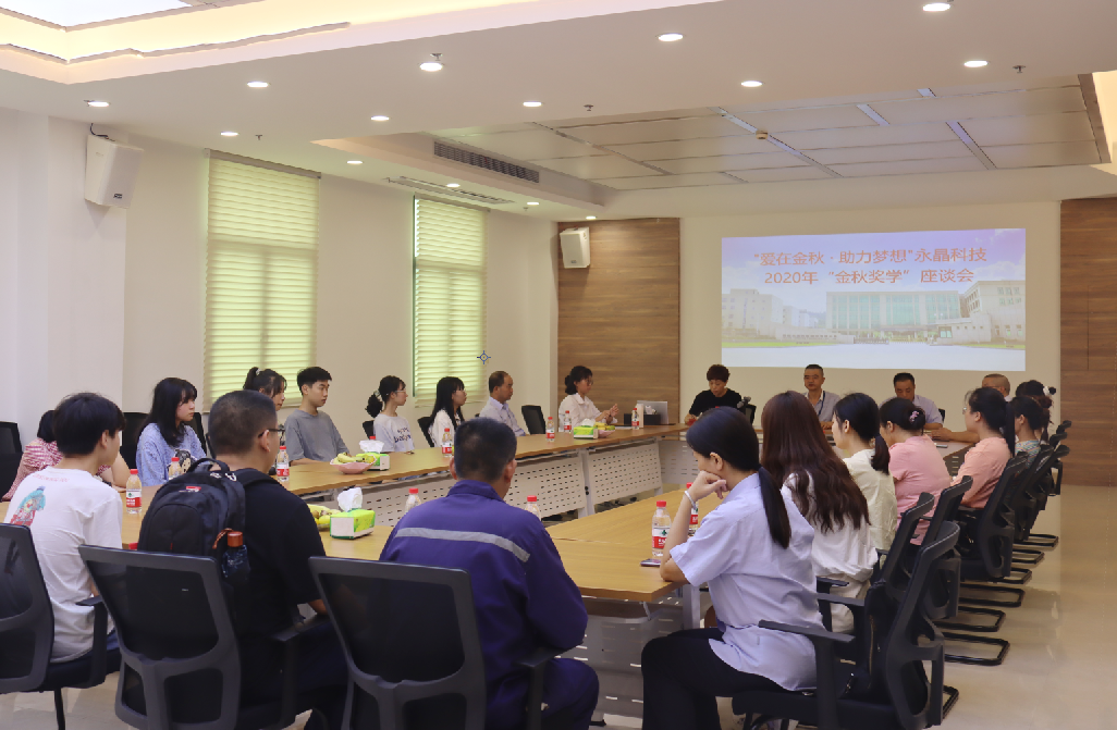 又是一年開學(xué)季,助學(xué)圓夢(mèng)正當(dāng)時(shí)。2020年9月14日,永晶科技工會(huì)組織召開“愛在金秋·助力夢(mèng)想”2020年助學(xué)獎(jiǎng)勵(lì)金發(fā)放座談會(huì),向取得優(yōu)異成績(jī)的職工子女致以誠(chéng)摯的問候和美好的祝福。公司副總經(jīng)理兼工會(huì)主席任清貴、工會(huì)副主席兼人力資源部部長(zhǎng)洪勝財(cái)、大學(xué)新生及學(xué)生家長(zhǎng)代表共計(jì)30余人參加了座談會(huì)。